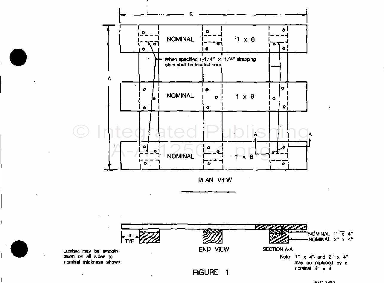 Cap shall have two nominal 1 x 6 inch boards as ends and two nominal 1 x 6 inch boards as sides. The side board shall overlap the end boards. The sides and ends shall be fastened together (nailed) with 6 inch faces vertical and shall be reinforced with steel strapping nailed around the corners. The top shall consist of five nominal 1 x 6 inch boards equally spaced in the same direction as the end boards and long enough for the ends to be flush with the outside edge of the sides. The top board shall be fastened both to the end boards. (See figure 1).